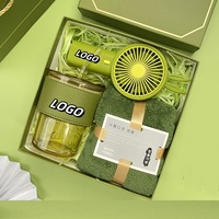 Set Regalo Aziendale Personalizzato con Logo, Tazza Verde, Asciugamano e Ventilatore, Spedizione Diretta dalla Fabbrica